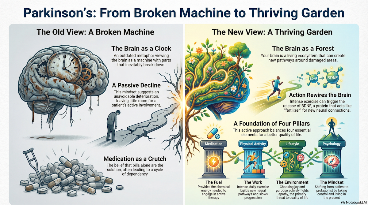 When affected by Parkinson’s, our brain is no longer, as it once was thought as a machine, destined to lose power, fall apart, and degenerate.